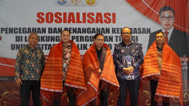 - Prof. Dr. Maidin Gultom, S.H., M.Hum (Rektor Unika Santo Thomas) dengan materi Sosialisasi Pencegahan dan Penanganan Kekerasan di Lingkungan Perguruan Tinggi.